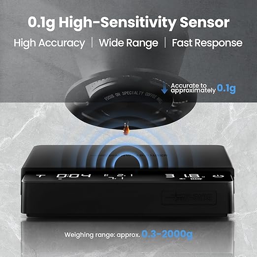 - Brew More, Charge Less: The coffee brewing scale is paired with a 3000mAh high-capacity battery that can support long hours of use, even in busy cafes. It significantly outperforms other scales with only a few hundred mAh, dramatically reducing the need for frequent charging.