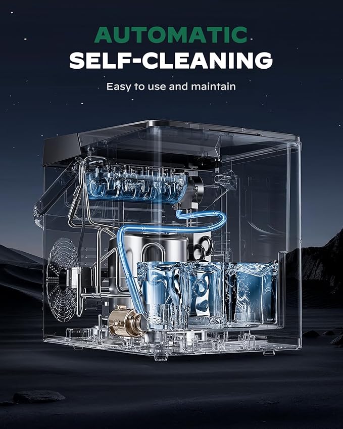 - Effortless Cleaning & Compact Design: The ice makers countertop features an automatic self-cleaning mode, ensuring hassle-free maintenance and fresh, hygienic ice every time. Plus, its compact size (8.9" × 13.2" × 11.14") makes it easy to place and move for use in kitchens, offices, or even RVs.