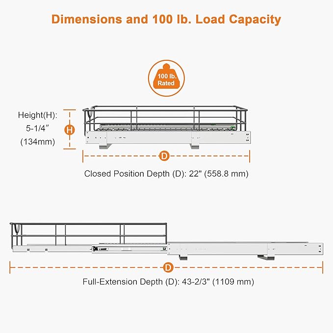 - Smooth and Sturdy Sliding System - Equipped with heavy-duty, soft-close ball-bearing slides, this sliding shelf organizers ensure quiet and effortless operation. Built to support up to 100 lbs