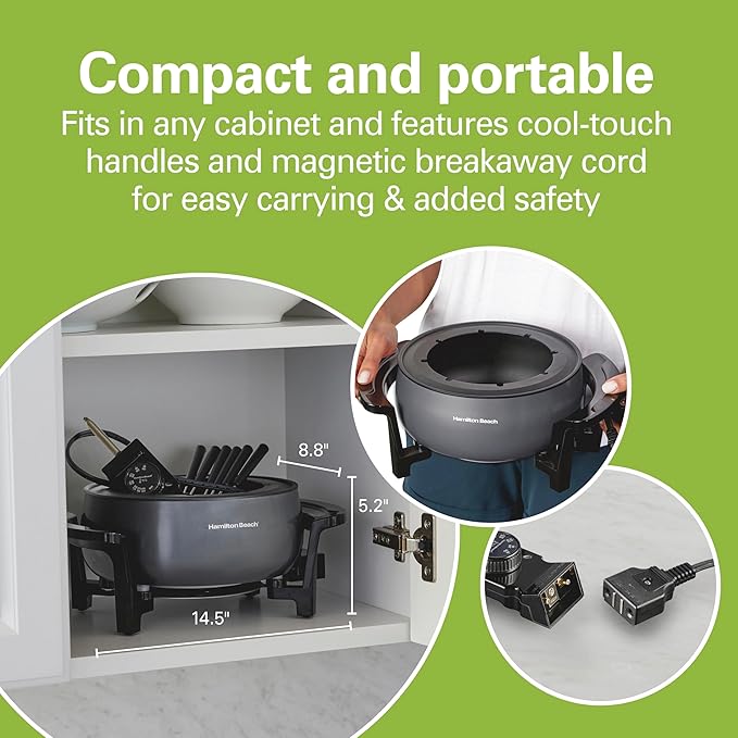 - EASY-CLEAN CERAMIC NONSTICK INTERIOR: Food won't stick to the inside of the electric fondue pot and everything washes away with soap and water. The pot is durable for long-lasting performance and is PFAS-free for peace of mind.