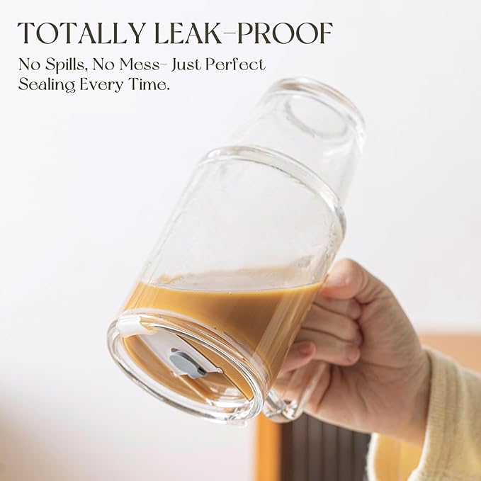 - 【2 Pack Glass Tumblers with Lids & Straws】 – Made from thickened High quality glass, safe for iced coffee, hot tea, smoothies (not insulated). 24oz large capacity perfect for home, office, travel.