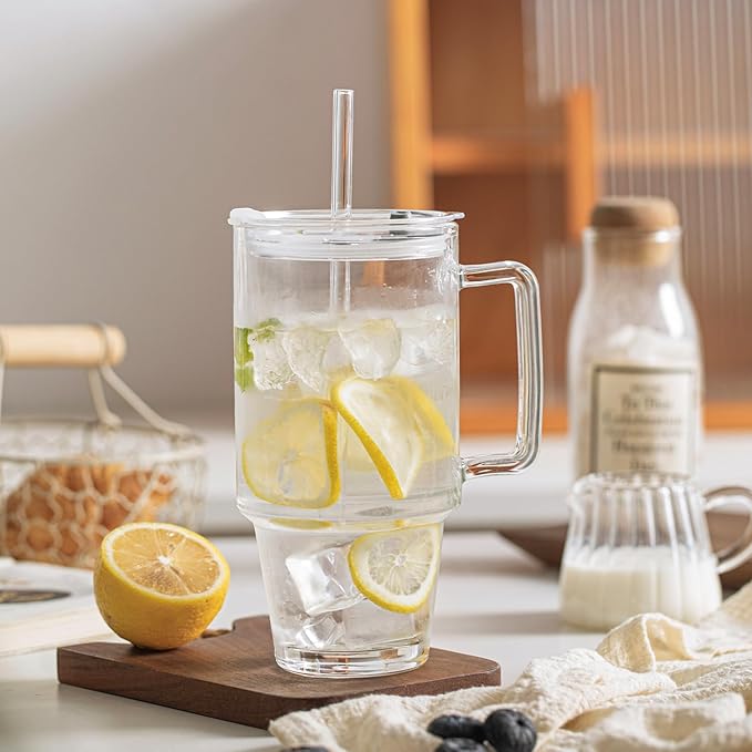- 【Eco-Friendly Reusable Drinkware】 – Sustainable glass cups reduce plastic pollution. Dishwasher safe (hand wash recommended to preserve crystal clear appearance). Matching straw colors available.