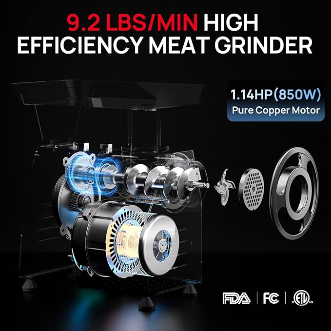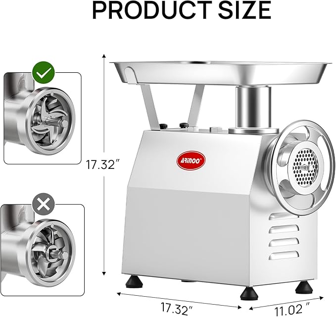 TK #22 Electric Heavy Duty Meat Grinder, 1.2 HP Stainless Steel Meat Mincer with 2 Grinder Knives, 2 Grinder Plates & 3 Sausage Stuffing Tubes, Meat Grinder for Home Kitchen Use