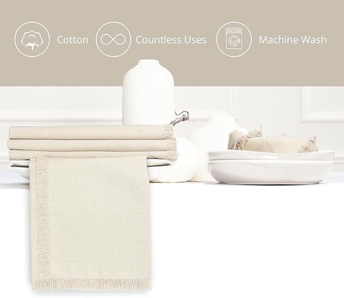- Handmade Craftsmanship: Our 18x18-in dinner cloth napkins for weddings provide generous coverage. The hand-pulled threads on these cotton table napkins create a 0.8-inch fringe on all sides, adding a refined touch to elevate your table’s elegance.