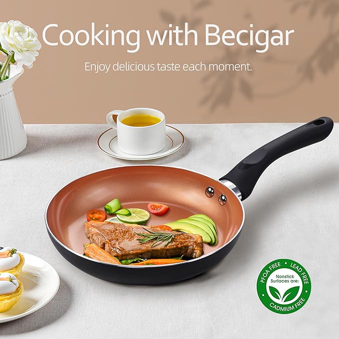 - 1. High-Performance Nonstick Ceramic Coating: BECIGAR Ceramic Pots and Pans Set, 15PCS Nonstick Set,Pots and Pans Set Ceramic,Ceramic Pan Pot Set,Ceramic Nonstick Pan Pots and Pans Set Non Stick Ceramic(Non-Induction), Non-stick performance, PFOS/PFOA free, our pots and pans set ceramic nonstick cookware ensures your daily cooking is always safer and healthier.