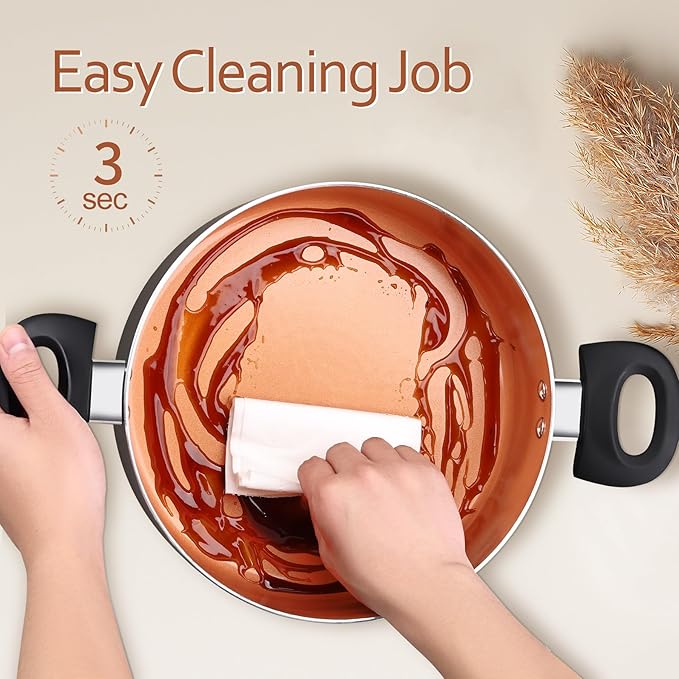 - 4. Easy Cleaning: Just a cloth and rinse it with water, less water wasted.recommend hand wash,it is really easy to clean. Our nonstick ceramic cookware set are DISHWASHER SAFE ceramic nonstick cookware set, making cleanup a breeze. Ideal for busy kitchens, these non stick ceramic frying pan are nonstick for effortless cooking.