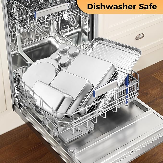 - EVEN HEATING & DURABLE: Heavy-gauge stainless steel construction provides excellent heat distribution and long-lasting durability, Bakes evenly-browned cakes and cookies every time, Corrosion-resistant and built to withstand daily use, Oven safe up to 450°F