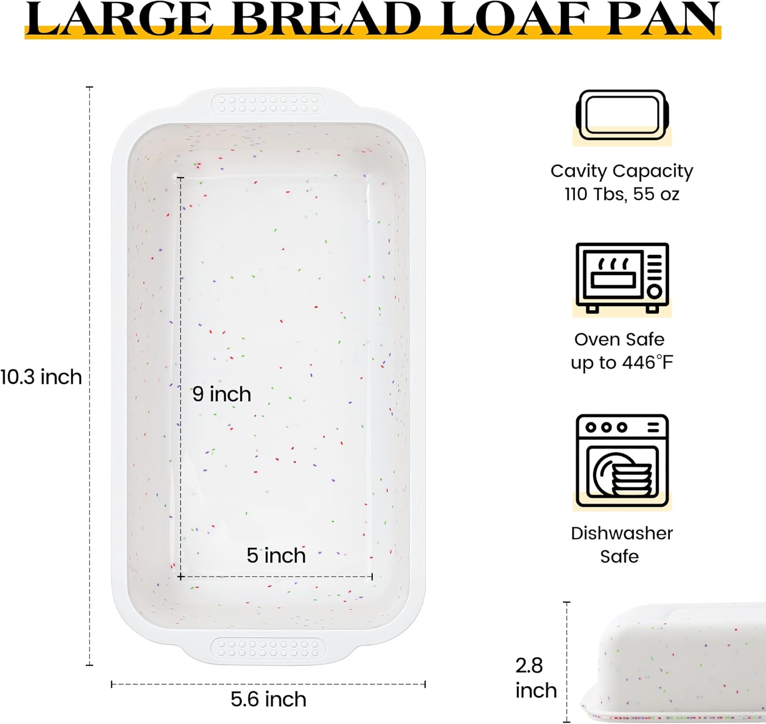 - Excellent Nonstick Surface:Unlike other bread baking pan, our silicone bread mold does not require coating to stay nonstick. It's easy to clean, can be cleaned with hot soapy water or directly in the dishwasher, help making baking easier than ever before