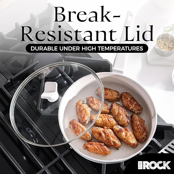 THE ROCK SOHO 11-Inch Non Stick Frying Pan with Lid–Nothing Sticks, Never Warps, Lasts Longer, Ceramic Non Toxic Skillet with Heat-Resistant Handle, PTFE PFOA&PFAS Free, Oven & Dishwasher Safe, Cream
