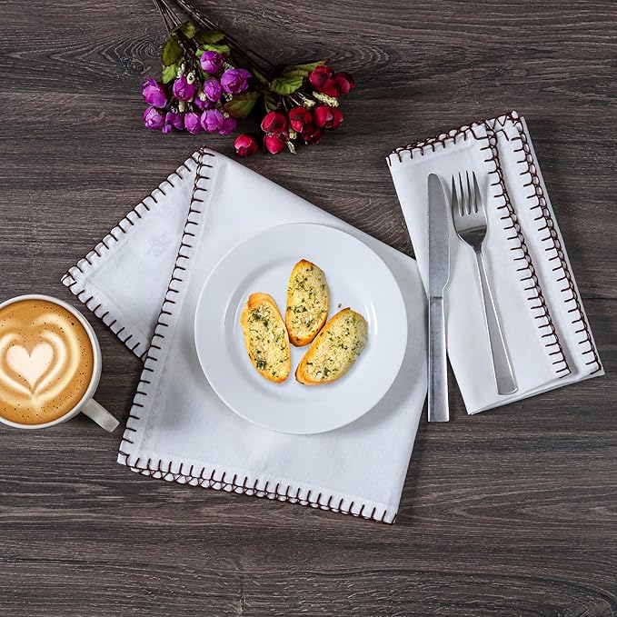 - Elegant Hot Chocolate Design – Add charm to your table with these 18x18 cotton cloth napkins, featuring blanket stitch selvedge edges for a refined and polished look.