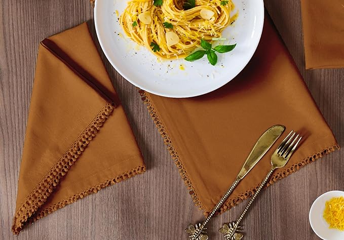 Bedding Craft Cotton Cloth Dinner Napkins Set of 12 – 18x18 Desert Sun with Decorative Lace Selvedge – Durable Machine Washable Fabric Napkins for Weddings, Baby Showers, Parties & Dining