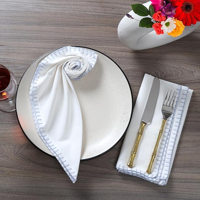 - Elegant Lavender Blue Design – Add charm to your table with these 18x18 cotton cloth napkins, featuring blanket stitch selvedge edges for a refined and polished look.