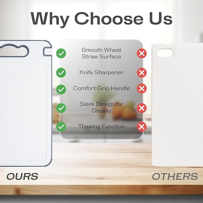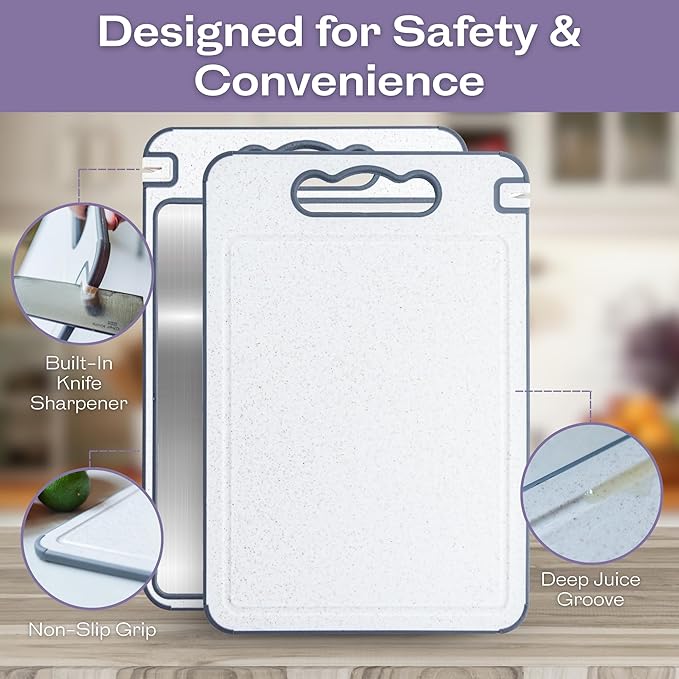 - Comfortable, Thoughtful Design – A balanced weight, easy-grip handle, and modern, neutral colors make this kitchen chopping board as easy to carry and store as it is to use — blending seamlessly into your non toxic kitchen.