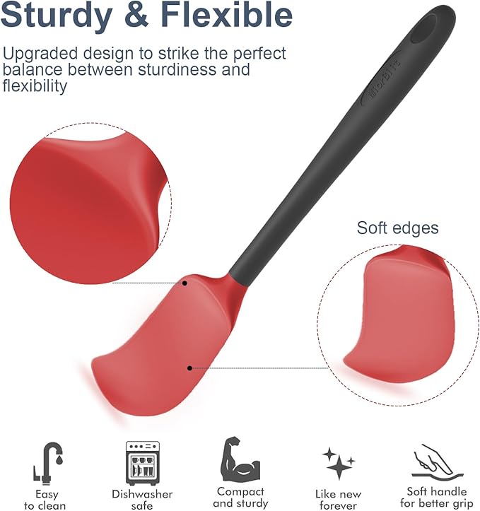 - Perfect Balance of Flexibility and Strength After rigorous testing, these spatulas have the ideal combination of hardness for effective mixing and softness to fit around the edges of bowls. Reinforced cores (such as stainless steel or nylon) ensure durability while maintaining flexibility.