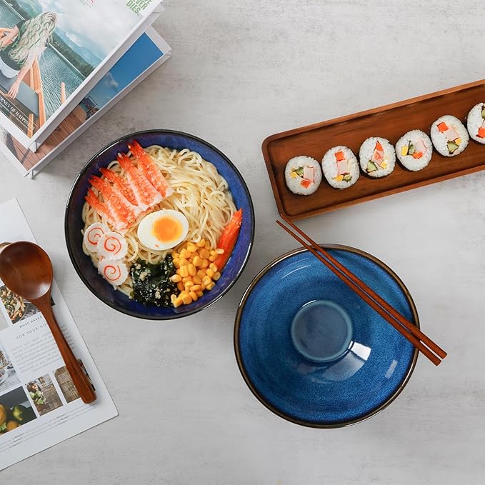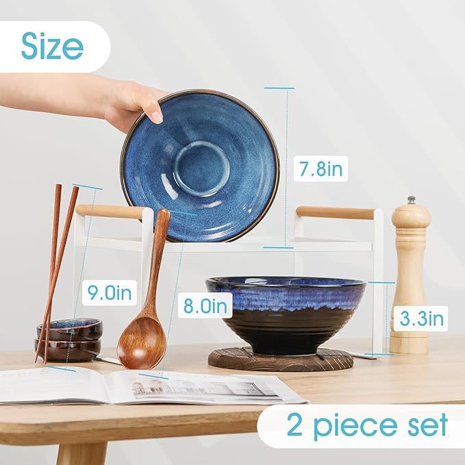 - 【Perfect Gift】Two ramen bowls are accompanied by 2 spoons and two pairs of chopsticks, whether it is for personal use to create a ceremonial dining table, or as a gift for friends who love food or relatives who have moved to a new home, it can convey unique feelings and make every meal a dual enjoyment of visual and taste.