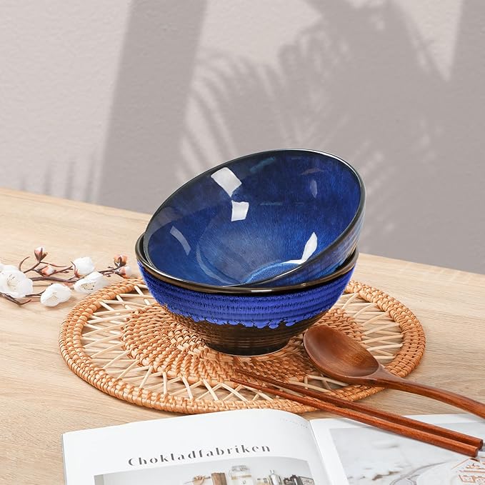 - 【Unique marine art】Deep sea army blue glaze blends volcanic ash texture, kiln transformation technology, multiple colors inside the glaze react with each other, and each bowl flows with unique wave patterns, blooming with the most beautiful colors. Each item is a limited edition - the visual focal point that lights up the dining table!