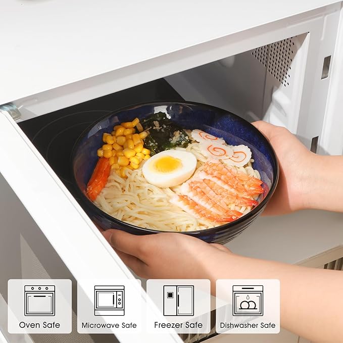 - 【Durable and reassuring】Ramen Bowls is made of high-quality ceramic clay and glaze, free of lead and cadmium. Anxin Hot Soup - No leakage, no odor, and worry free!
