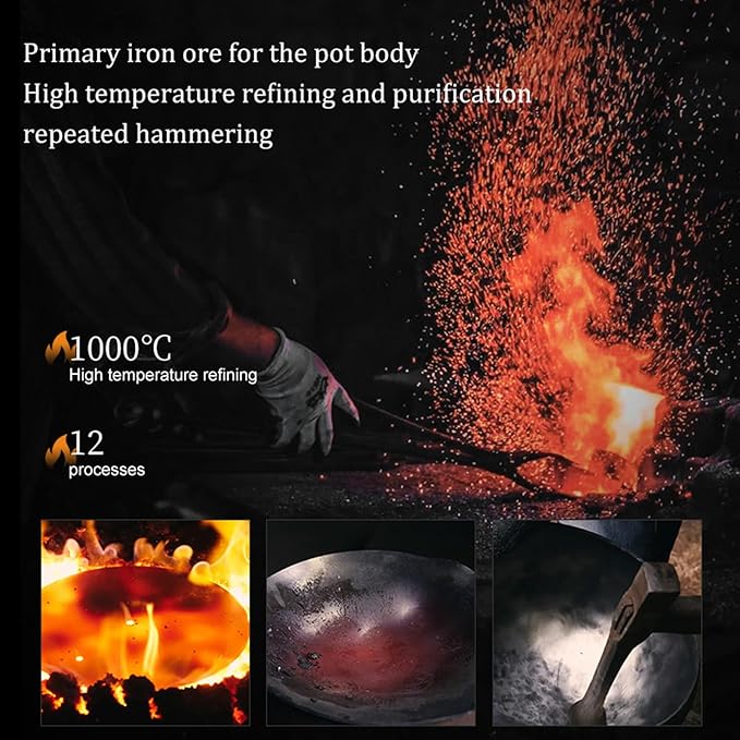 - CARBON STEEL WOK PAN: This wok pan is forged from carbon steel, renowned as the best material for woks. Once pre-seasoned, it develops a natural non-stick surface, nitriding process makes it less prone to rusting. It boasts exceptional durability, making it a reliable choice for your kitchen.