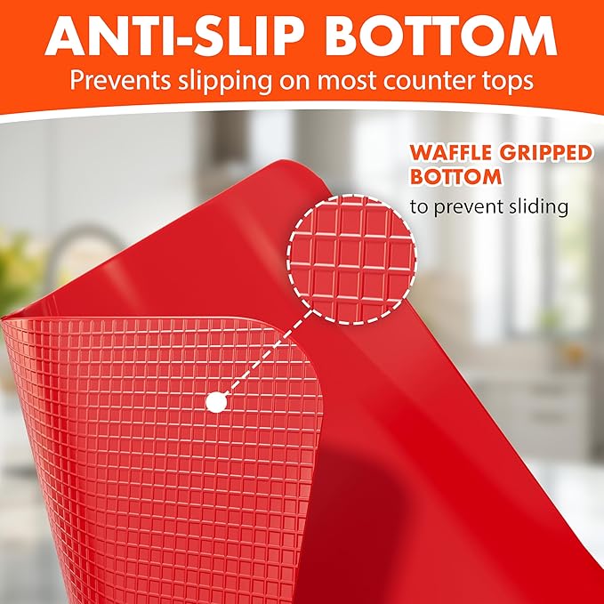 - [π‘π’π‘-π¦πππ£ ππ₯ππ£ π§πππ§ π¦π§ππ¬π¦ π£π¨π§] β Waffle-textured backing prevents slipping on most countertops. No more dangerous sliding boards while chopping, just stable, confident cuts every time.