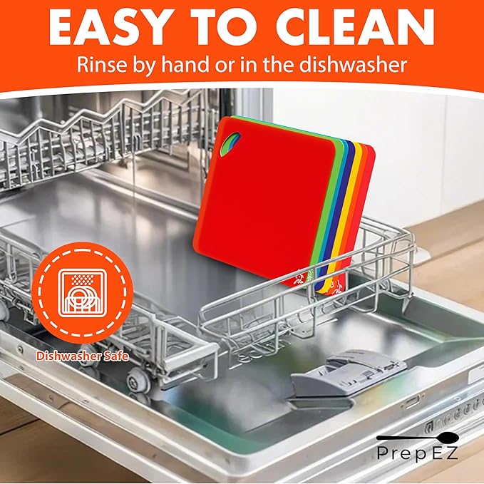 - [π¦ππ¬ ππ’π’πππ¬π π§π’ ππ₯π’π¦π¦-ππ’π‘π§ππ ππ‘ππ§ππ’π‘] β Stay safe with 7 color-coded cutting mats, each designated for meat, poultry, fish, fruits, veggies, dairy, or cooked foods, zero guesswork, total hygiene.