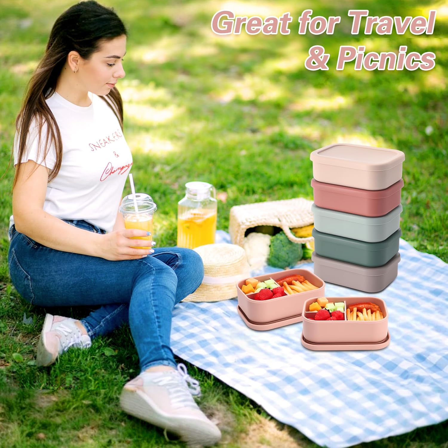 - Compact and Colorful Design: each silicone lunch container with lid measures 7.3 x 5.4 x 2.4 inches—compact enough to fit in bags while spacious enough for diverse snacks; Available in a range of vibrant colors to match your personal style and enhance mealtime enjoyment