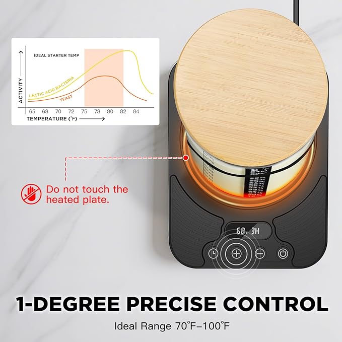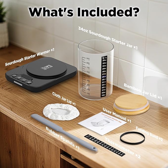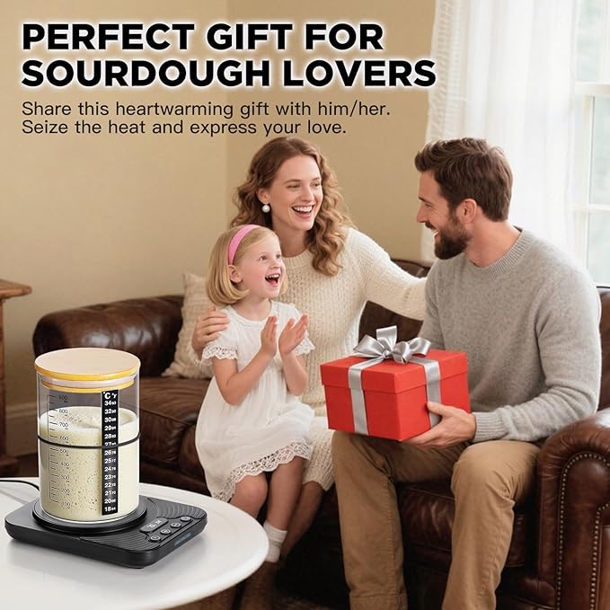 - ✅ Perfect Gift for Sourdough Lovers & Beginners – This all-in-one sourdough starter riser warmer set helps new bakers skip the trial-and-error phase. The LED display and intuitive controls make it easy to use, while the compact design fits most jars. Whether you're a busy home baker, a hobbyist, or just getting into artisan bread, this game-changing kit speeds up starter growth so you can bake faster. An ideal gift for bread lovers and a must-have for sourdough beginners!