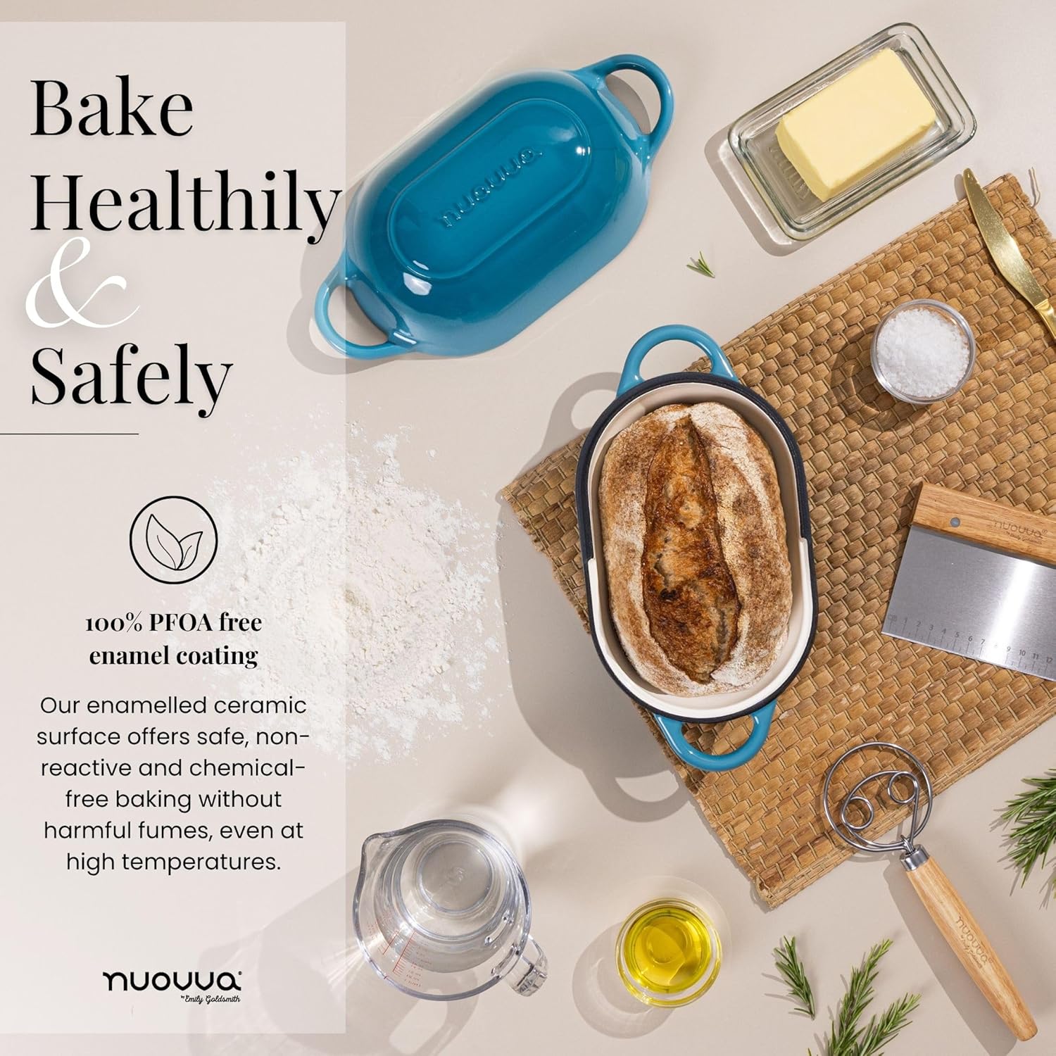 - DURABLE TRIPLE-LAYER ENAMEL: This enamelled cast iron bread loaf pan by Nuovva is constructed with a reinforced 3-layer enamel coating for extraordinary stability. 16cm x 24cm without handles and 31cm with handles, the chip-resistant finish ensures consistent use for years, ideal for everyday baking. Perfect for those who want long-term performance in their kitchen!