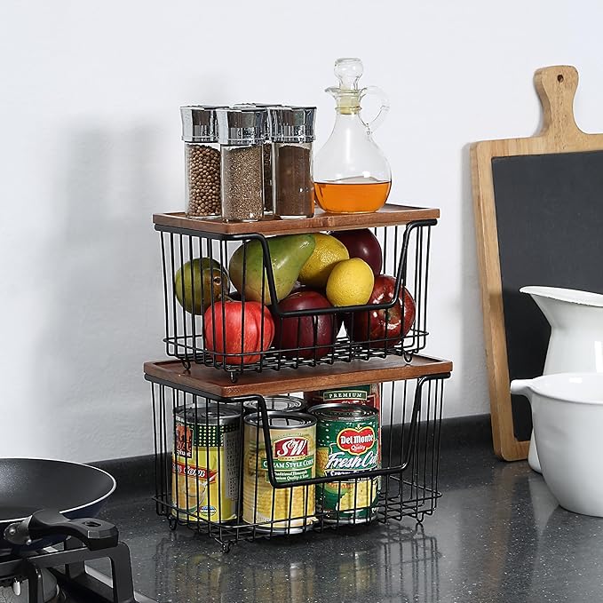 - Stackable with Acacia Wood Top – Natural acacia lids double as stackable bases to save space and add vertical organization.