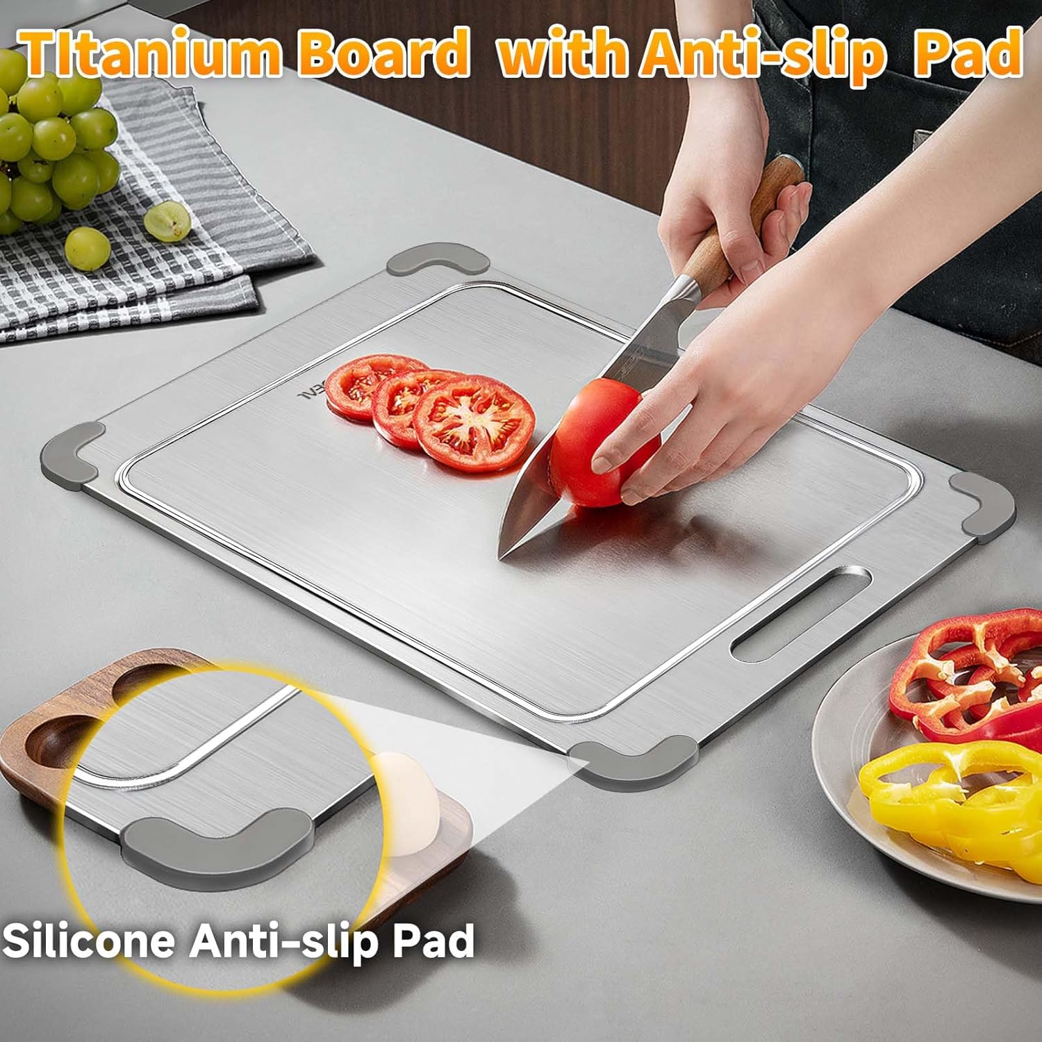 - 2025 New Titanium Chopping Board - The new pursuit of healthier kitchen, even chefs love it. Made of lightweight food-grade titanium, say goodbye to traditional chopping boards.