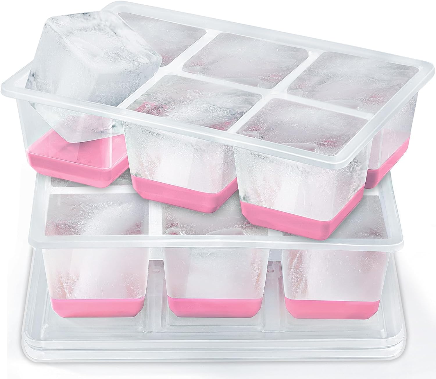 - 【Extra-Large Ice Cubes】Each ice cube tray makes 6 extra-large ice cubes (2.4x2.4x1.9in/6x6x4.8cm), perfect for whiskey, cocktails, or iced coffee. The large ice cubes melt more slowly, keeping your drinks chilled without dilution.