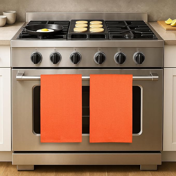 PurpleEssences Waffle Weave Kitchen Towel, 100% Cotton, 15x25 Inches, with Hanging Loop Ultra Soft Absorbent Quick Drying Dish Cloth, Tea and Hand Towels, 6 Pack - Christmas Holiday Winter - Orange