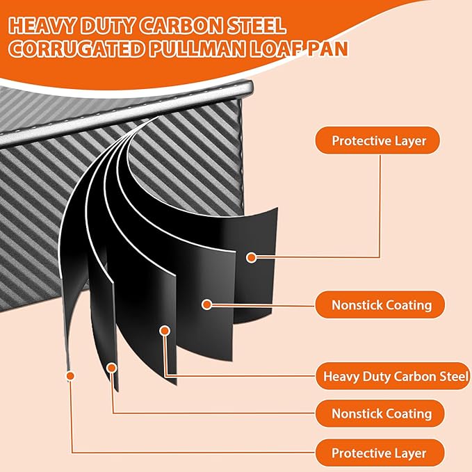 - DUARABLE&EASY MAINTENANCE – Featuring food-safe nonstick coating (PFOA/PTFE/BPA Free), this carbon steel bread pan resists rust and stains. Hand-wash recommended for longevity - simply soak in warm soapy water for 10 mins. Includes silicone corner protectors to prevent coating damage during storage.