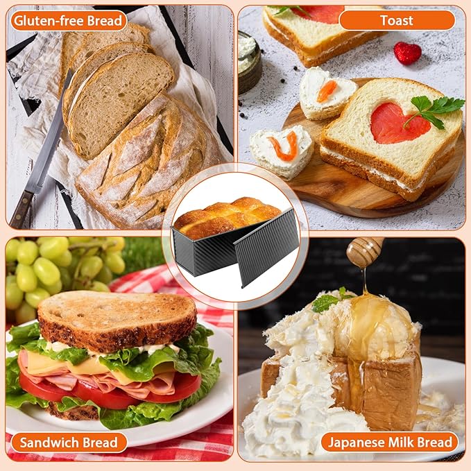 - CHEF-APPROVED DEMENSION&VERSATILITY – The 13"x4" baking surface accommodates 2.2lb dough batches effortlessly. As a premium bread loaf pan, it offers dual-mode functionality: Use the airtight lid for perfectly square sandwich bread loaf pan creations or remove it for artisan-style baking. Perfect for everything from rustic homemade bread to professional patisserie.