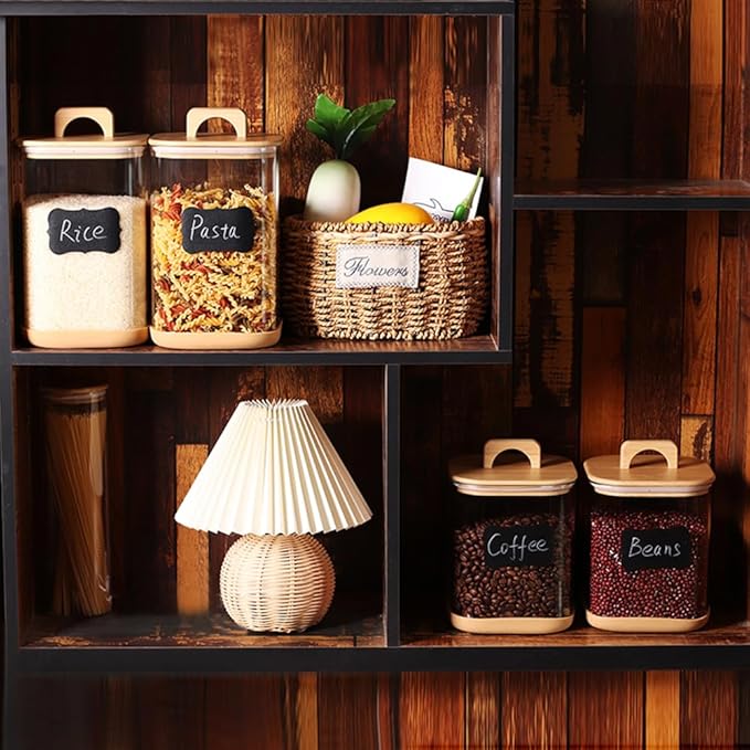 - 【Upgrate Handle Lid】 Glass jars with handle bamboo lids, airtight with a harmless silicone loop around the wood cover, create a moistureproof environment to keep your dry food inside clean and fresh, locking out air moisture and bugs.