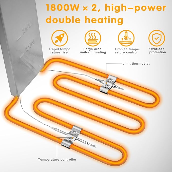 - Important Notes: This double Fryer features two heating elements, hence it comes with two power cords. Its total power output equals 1800W multiplied by two. You may choose to operate either element individually or both simultaneously. Please pay attention to the operating environment and power capacity.