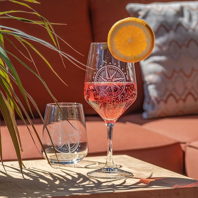 - TIMELESS NAUTICAL DESIGN: Each glass features a beautifully detailed compass rose, sand-etched with precision for a rich, frosted texture that won't fade or wash off.