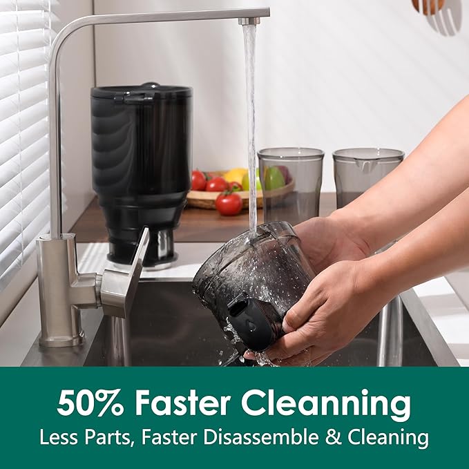 - Large Capacity and Feed Chute Fits Whole-Sized Fruits: Our fully upgraded 5.3-inch feed chute is three times larger than standard models. With a generous 1.8L capacity, you can add more food at once to enhance juicing efficiency. Now you can insert whole-sized apples without the need to chop them up, saving you time
