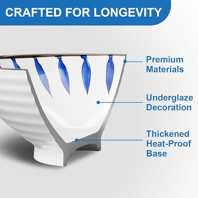 - MULTI-FUNCTION COOKER: This ceramic bowl is multifunctional.smoothieIt's perfect for ramen, salads, noodles, cereals, fruits, pasta, soups, desserts, udon, snacks, pho noodles, porridge,smoothie, etc. These are safe in the dishwasher, microwave, or in the refrigerator and oven