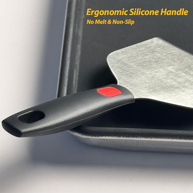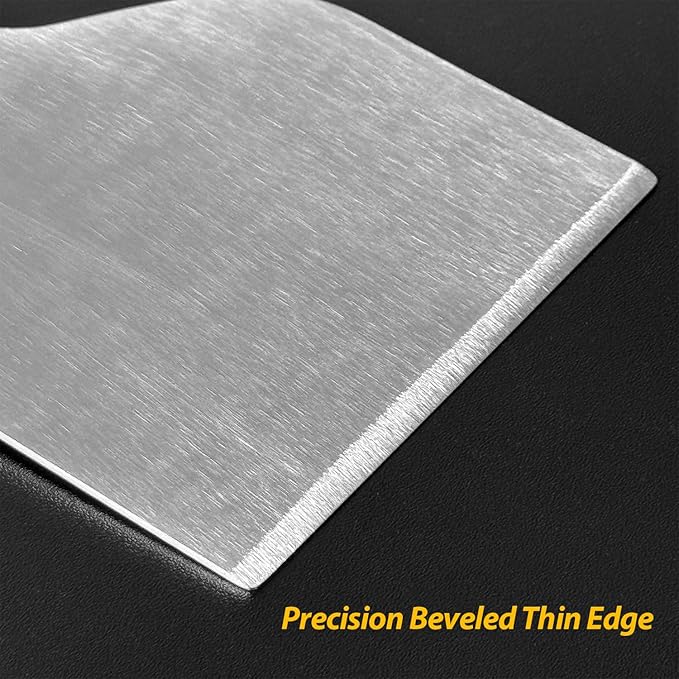 - Knife Grade Thickened Stainless Steel: With beveled front edge, this flipper is stronger and sharper to flip faster with more flavourful browned bits, sturdy enough to lift and press heavy items without bent or flex