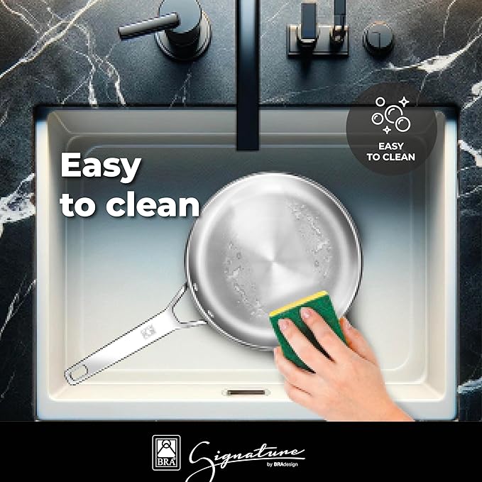 BRA COOKWARE Signature 10 Piece Cookware Set | Stainless Steel Professional Kitchenware Set | 2 Pots, 1 Sauté Pan, 2 Frying Pans, 1 Saucepan, 4 Lids | All Stovetop Compatible | PFOA Free