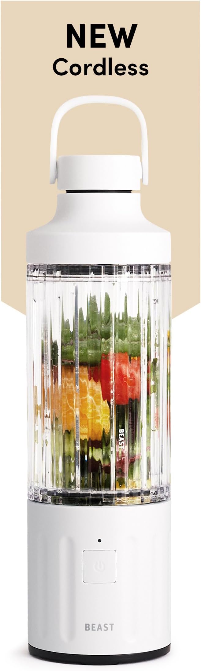 Beast GO Cordless, Premium Portable Blender for Shakes & Smoothies, 22oz Vessel, Blends Ice & Frozen Fruit, Travel-Ready, Rechargeable USB-C Battery, Drinking Lid and Straw System (Cloud White)