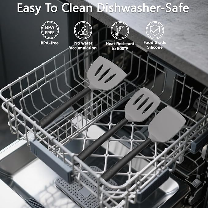 - [Easy to Clean & Dishwasher Safe]: The non-stick silicone surface makes cleanup a breeze, and all utensils are dishwasher-safe for added convenience. With top hanging holes and the included storage holder, organizing and storing your utensils is easier than ever