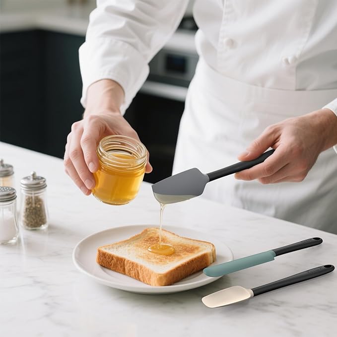 - [Stronger & More Flexible]: Coukre Silicone Spatula has a reinforced nylon core inside for extra strength. And the flexible tip thoroughly scrape the sides and bottoms of the pots and pans without scratching