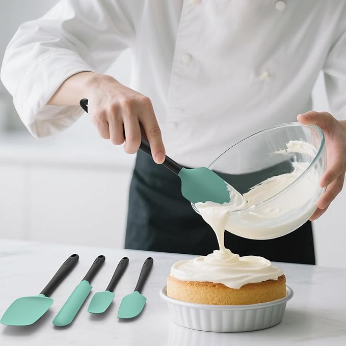 Coukre Silicone Spatula Set of 5,High Heat Resistant, Food Grade Silicone, Upgraded Extended Reinforced Handle,Dishwasher Safe, for Baking, Cooking (Aqua Green Black, Color block)