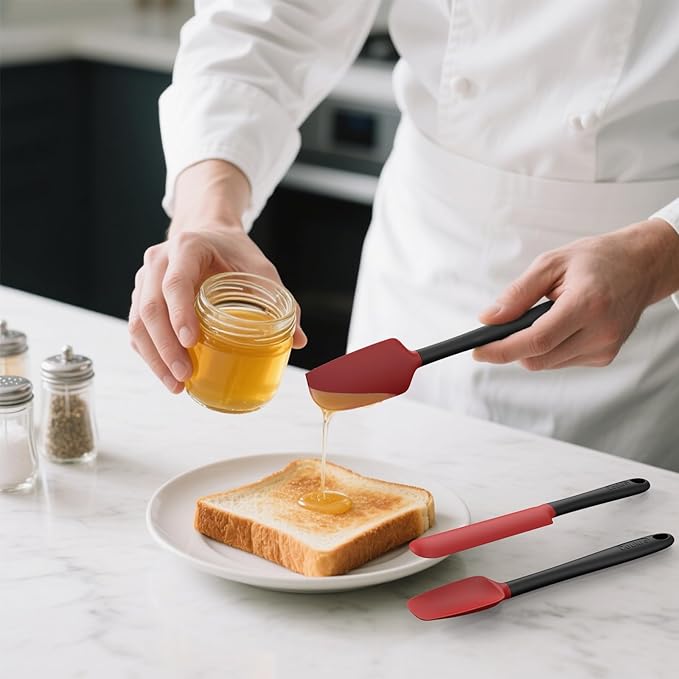- [Stronger & More Flexible]: Coukre Silicone Spatula has a reinforced nylon core inside for extra strength. And the flexible tip thoroughly scrape the sides and bottoms of the pots and pans without scratching