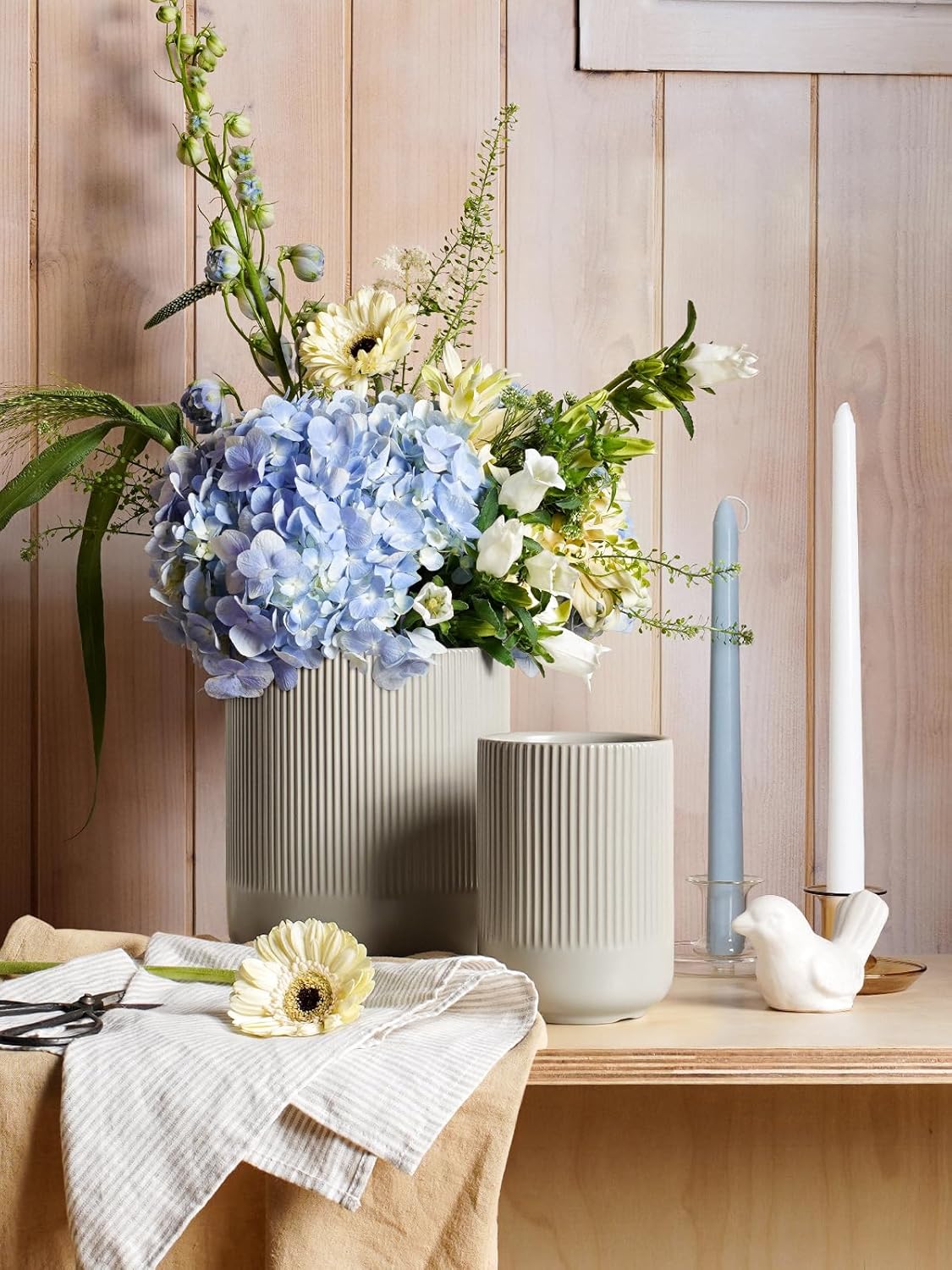 LE TAUCI Utensil Holder, 7.3"+5.4" Ceramic Kitchen Utensil Holder for Countertop, Large Cooking Utensil Crocks for Kitchen Counter, Modern Utensil Organizer for Spatula, Set of 2, Oatmeal Greige
