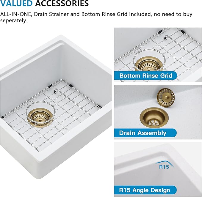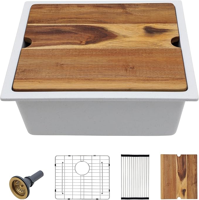 - Package/Fulorni Service ––Complete package includes a 21 inch single bowl granite composite undermount bar prep sink workstation, a solid wood cutting board, roll up drying rack, a bottom rinse grid, a gold drain assembly with cover, etc.|If any concerns and questions about the 21" white bar sink, pls get in touch with us, Fulorni service team is always ready to help you.