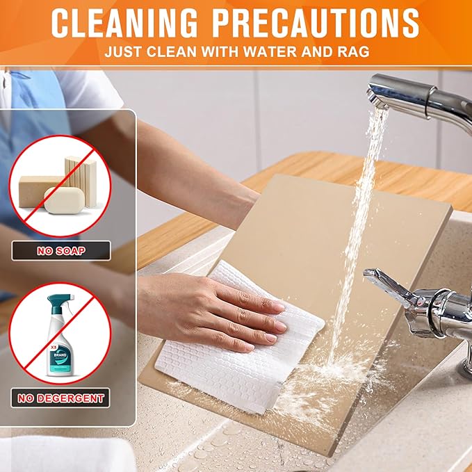 - Product Care Instructions : Remove leftover food, rinse with warm water while scrubbing with a brush. Avoid using soap or detergent. Staining is normal and does not impact performance. Remove leftover food, rinse with warm water while scrubbing with a brush. Avoid using soap or detergent. Staining is normal and does not impact performance.