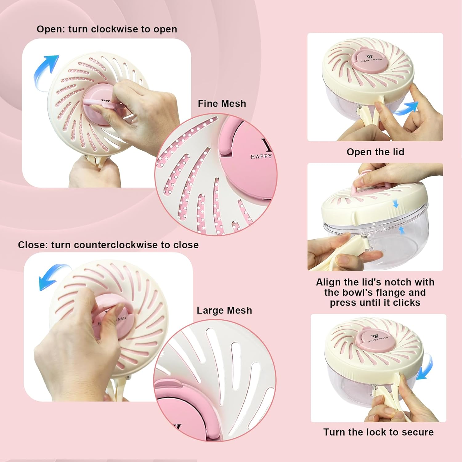- Splash-proof: The colander's filter design lets you wash fruits without getting your hands wet! Just fill with water, shake to clean, and pour out. This fruit strainer prevents splashing and keeps your countertop dry and tidy.