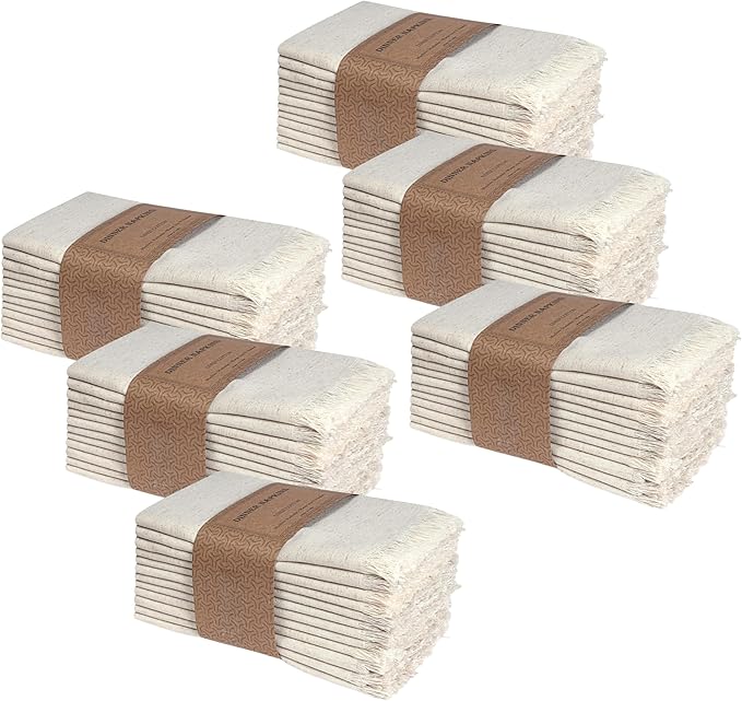 Bedding Craft Linen Flax Cotton Cloth Napkins 18x18 Set of 72 – Natural Fabric with Fringed Corners – Machine Washable Dinner Napkins for Weddings, Baby Showers, Parties & Table Décor (6 Dozen)
